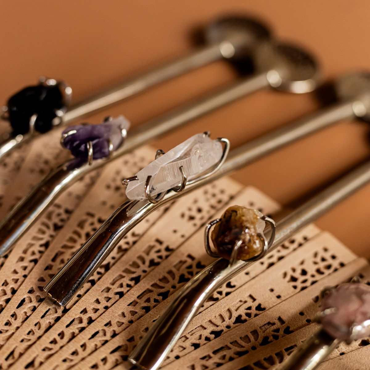 - Cuarzo Cristal – Amplifica la energía, limpia y permite mayor claridad mental.