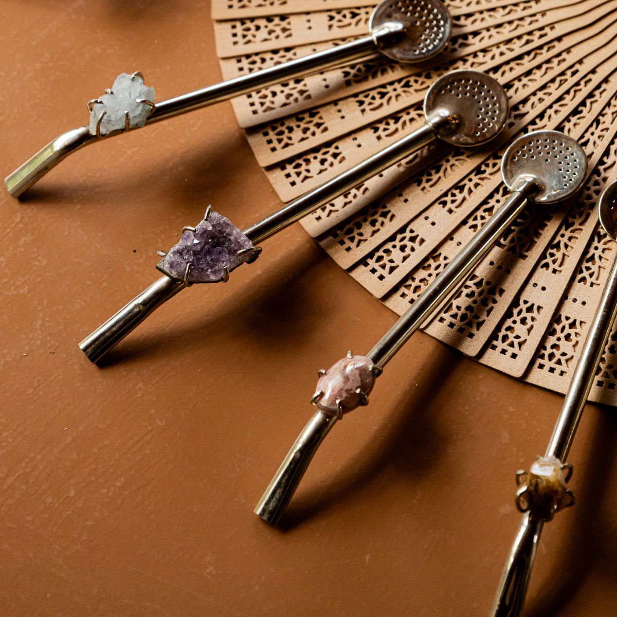 Cada una de estas bombillas está hecha de manera artesanal, con mucha dedicación y pasión. Llevan piedras naturales seleccionadas especialmente para acompañarte con buena energía cada vez que cebás un mate.