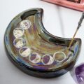 Portasahumerio de cerámica con forma de luna y tornasolado.
