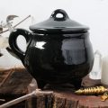 El tazón caldero de cerámica es ideal para tés y cafés XL! También va perfecto para cereales, sopas y caldos. Está esmaltado color negro por fuera y transparente por dentro. Trae tapa a juego.